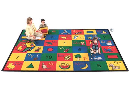 Blocks of Fun - Size 8tt4 in x 11ft8 in This rug incorporates basic shapes, numbers, and the alphabet with related phonic images, making learning a truly fun experience! Use it alone or combine it with ABC Phonic Squares & Shape/Number Squares for hours of matching fun. Item#AACK 1312 |