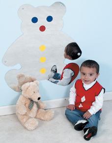 BEAR FRIEND WALL MIRROR Our friendly Bear reflects all your little ones’ moods, smiles, and discoveries. Special formulation, shatter resistant acrylic. 29in L x 26in W