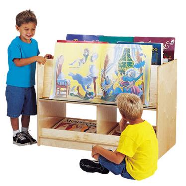 BIG BOOK BROWSER Our BIG BOOK BROWSER is perfect for early childhood environments! Four big book sections on top with poster or big book storage below. Each end features a display easel which extends the overall length to fifty-five inches. Caster mounted. Minimal assembly.