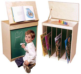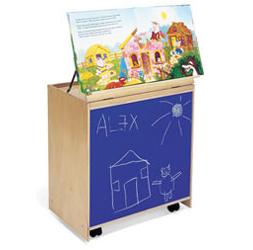 Big Book Easel Storage - Whiteboard Mobile big book storage center with dry erase front. Seven storage sections in rear of cabinet. On Casters. Chalkboard front shown. Dimensions:29inH X 24inW X 16inD Item#DCSWP1020 |