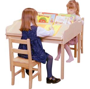 Sloped Reading\Activity Table - NEW This table has a large work area on each side and a recessed storage area in the center for books and accessories. Dimensions:27inH x 32inW x 32inD Item#DCSWP1278 |