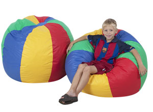 BEACH BALL LOUNGER Perfect size for bigger child, ages 3 to 10. Cotton poly chintz outer cover is removable with zipper and easily cleanable inner pocket is stain resistant polyurethane impregnated for liquid resistant use. Filled with shredded fire retardant foam Item#VACF600-066 |