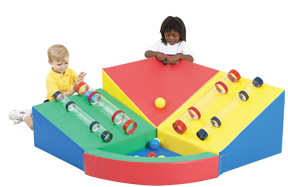 EXPERIMENTAL TUBE VALLEYS Gentle soft shapes empty into our collecting hollow. Watch different objects accelerate through size differentiated tubes. Experiment with size and shape discrimination, plus gravity, sorting, resistance, and how different objects travel through space. Item#VACF322-057 |