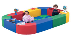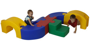 HABITAT HANGOUT Perfect for crawlies thru 3 yrs. Inter-connective molded playforms enhance large muscle experiences sized for success. Surfaces are just under 12in high and 12in to 15in wide creating inviting safe play. Open tunnels encourage little ones to explore space with their marvelous bodies. Indoor or outdoor use. 60in W x 87in L. Item#VACF910-042 |