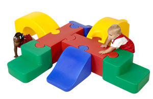 PUZZLE PLAY YARD 10 separate pieces mix and match forming myriad puzzle formations for indoor/outdoor use. Individual pieces flip and combine into infinite play possibilities. UV inhibitors preserve color outdoors. Item#VACF910-040 |